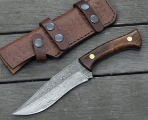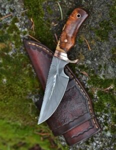 Hand Forged D2 Bowie Knife Steel Hunting Fix Blade – Stag Antler Crown & Wood Handle