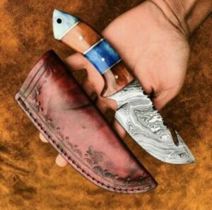 Handmade Damascus Steel Folding Guthook Blade Pocket knife Back Lock Hunting