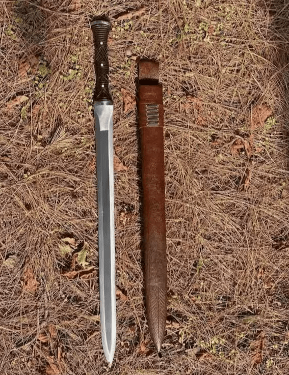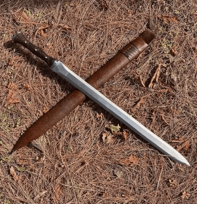 Crafted from high-quality carbon steel (truck spring), this sword is water-tempered for durability and precision. The versatile design allows for one-handed or two-handed use, making it a reliable choice for hunting, camping, and brush cutting.