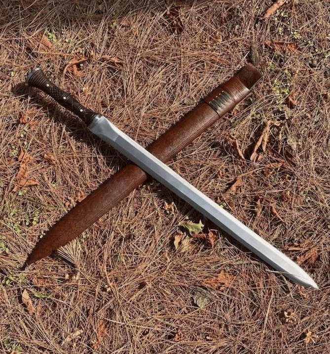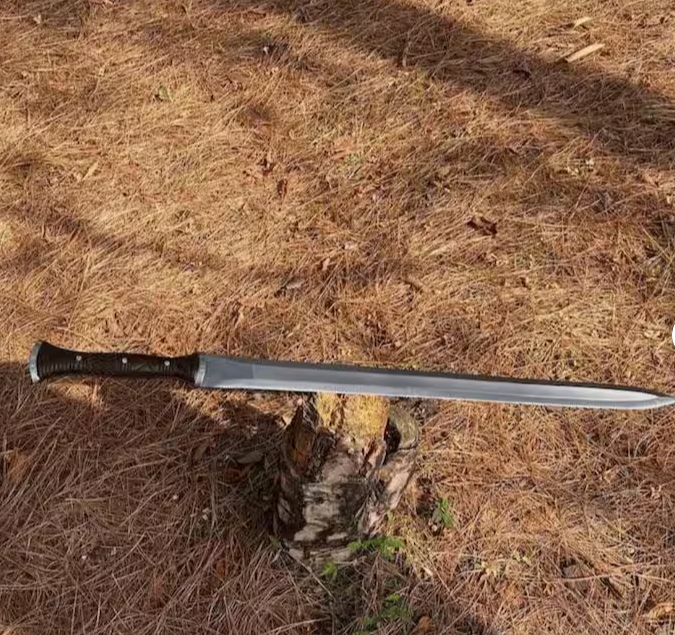 Crafted from high-quality carbon steel (truck spring), this sword is water-tempered for durability and precision. The versatile design allows for one-handed or two-handed use, making it a reliable choice for hunting, camping, and brush cutting.